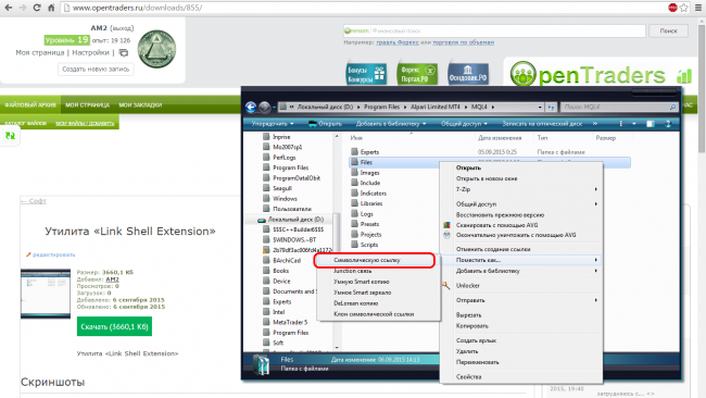/D — Создание символической ссылки на каталог (по умолчанию создается на файл).