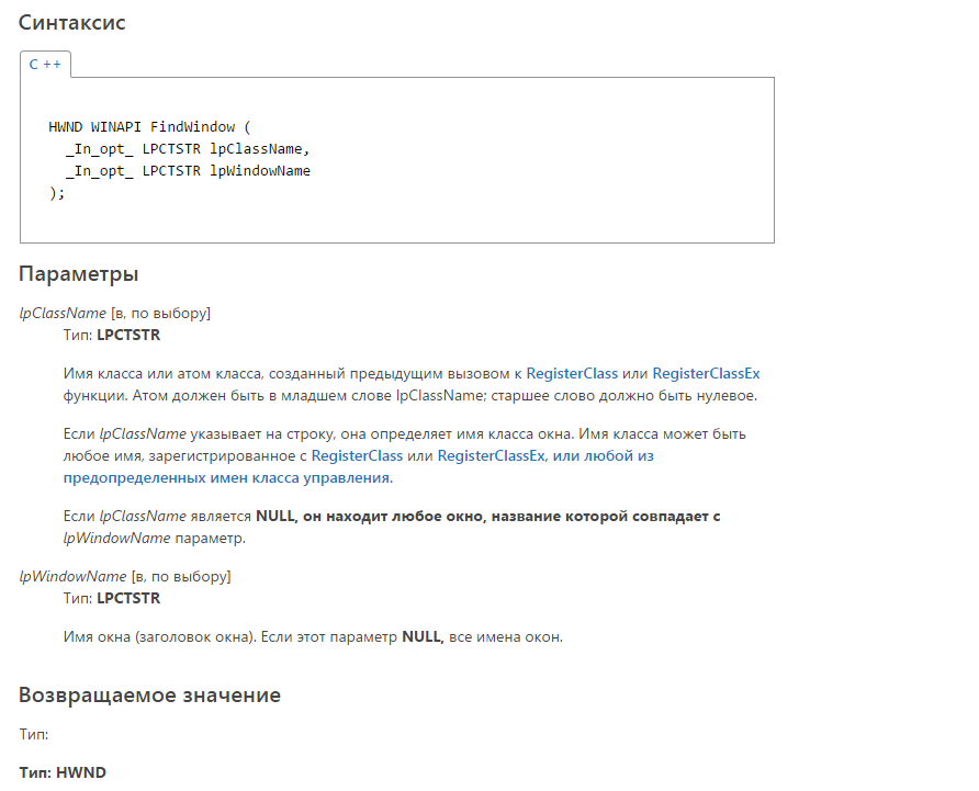 int FindWindowW(string lpClassName,string lpWindowName);Spy++ (SPYXX.EXE) — это служебная программа на основе Win32, предоставляющее графическое представление системных процессов, потоков, окон и сообщений окон.